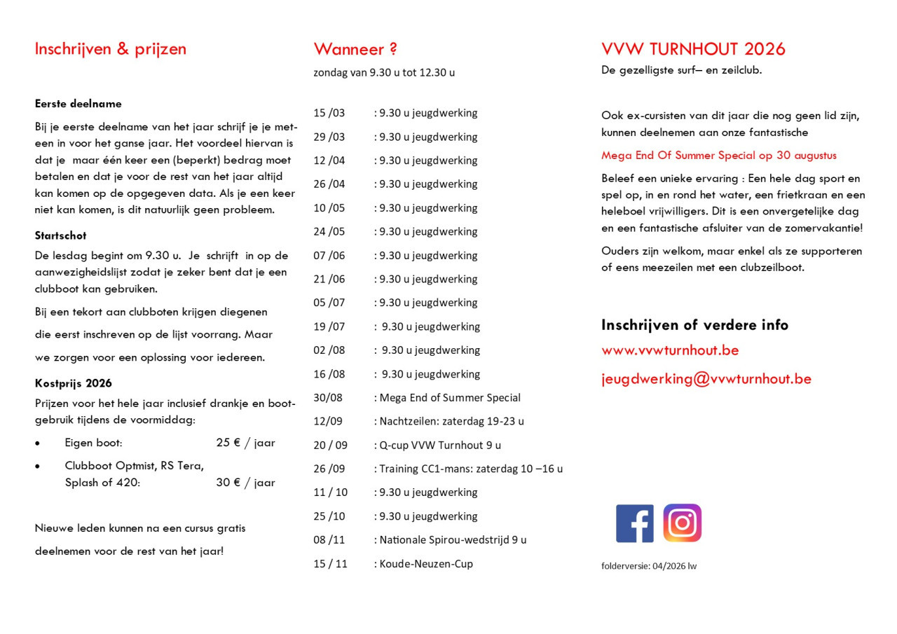 De planning van onze zeillessen tijdens de zomerweken 2026 is klaar.