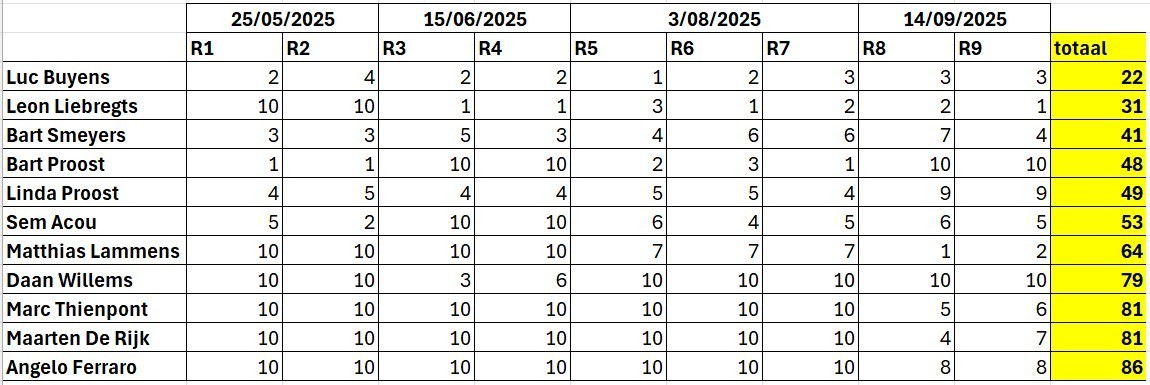 • Uitslagen wedstrijden